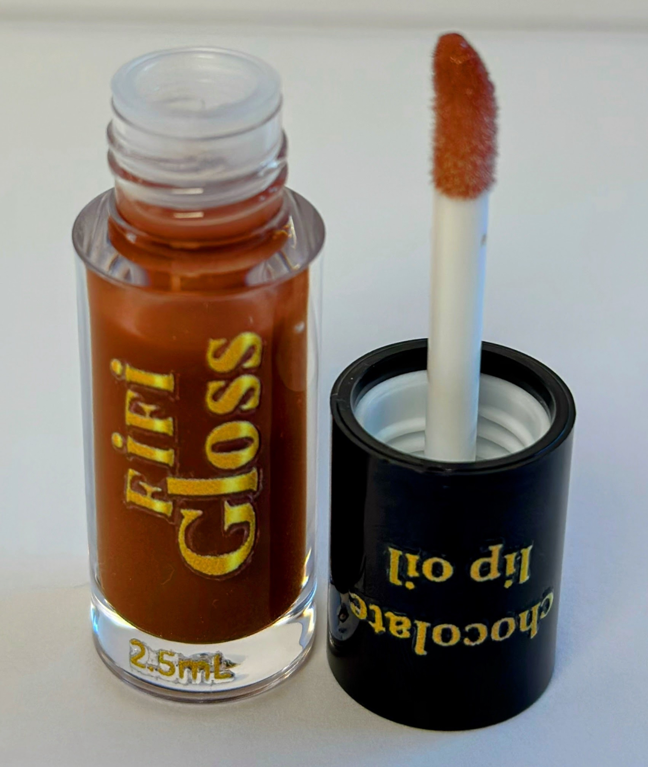Smooth brown lip oil with a chocolate flavor that keeps your lips soft and nourished.